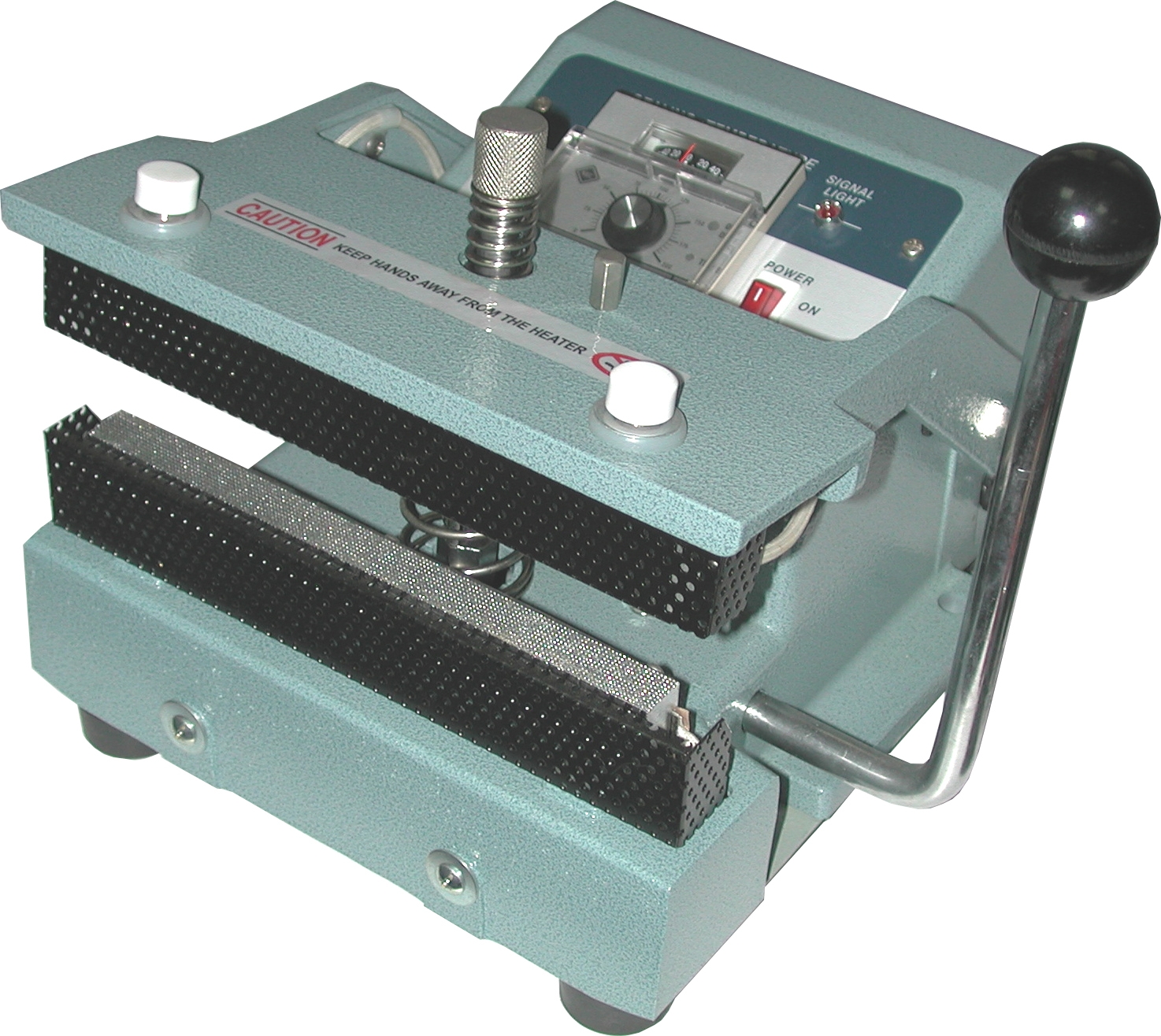Modèles thermiques de comptoir ou sur pied pour la fermeture des complexes thermo-soudables, commande pneumatique en option, support verticale mécanique ou pneumatique disponible.